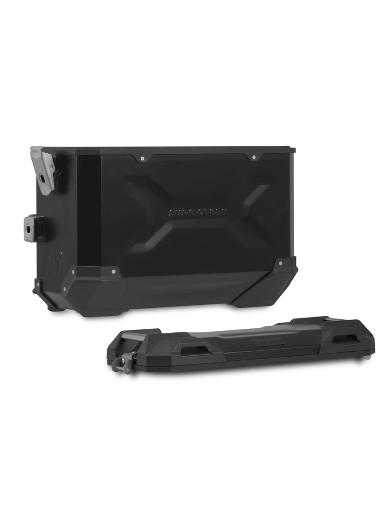 Wytrzymałe aluminiowe kufry TRAX ADV sprawiają, że czujesz się jak w domu na każdym odcinku drogi: wytłoczone wzory zwiększają stabilność spawanego aluminium o grubości 1,5 milimetra. Całkowicie zdejmowana pokrywa z uchwytami wykonanymi z anodyzowanego aluminium oraz zapięcie błyskawiczne ułatwiają załadunek i rozładunek bagażu motocyklowego; fazowana krawędź boczna zapewnia duży prześwit podczas pokonywania zakrętów. Stelaż i wielkość kufrów są idealnie dopasowane do tylnego kształtu i układu wydechowego motocykla. Przy rozwoju TRAX ADVENTURE pojawiło się następujące wyzwanie. Zbudować kufry, które pokonają wszystkie przeszkody motocyklowej codzienności, lekkie i łatwe w obsłudze, po prostu dobre: od praktycznego zamka błyskawicznego, przez zdejmowalną pokrywę, po ergonomiczny uchwyt. TRAX ADVENTURE łączą wysoką jakość z niską wagą. Ważą tylko od 4,6kg do 5,4 kg, czyli należą do grupy najlżejszych kufrów w swojej klasie.