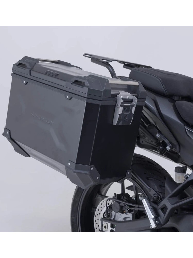 - Bardzo pewne i stabilne trzymanie kufrów TRAX i AERO oraz sakw SysBag 15 i SysBag 30