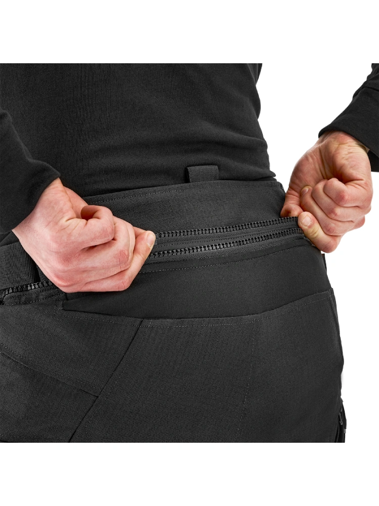 Funkcjonalność tego modelu zachwyca w każdym detalu. Liczne regulacje, w tym rzepy w pasie i na nogawkach, elastyczne wstawki na lędźwiach oraz antypoślizgowe panele, gwarantują idealne dopasowanie.