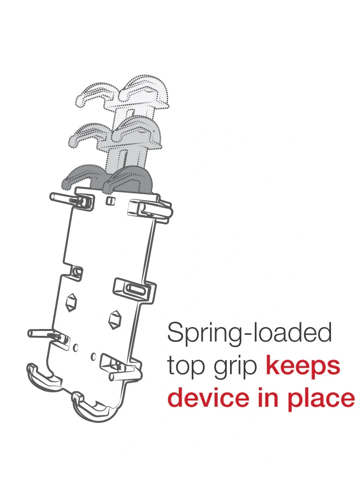 - regulowany uchwyt sprężynowy RAM® Quick-Grip™ z systemem RAM® Vibe-Safe™ redukującym drgania i chroniącym elektronikę