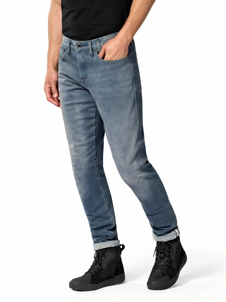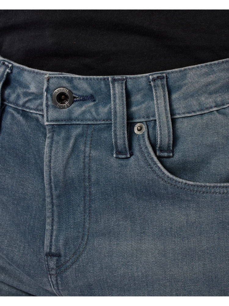 - 12.5oz Cordura® denim - denim zachowuje klasyczny wygląd bawełnianego dżinsu, który sprytnie maskuje cechy takie jak trwałość i odporność na ścieranie. Połączenie to jest mocniejsze niż regularne połączenie dżinsu i aramidu. Cordura jest wyjątkowo trwała, a jednoczenie komfortowa i stylowa. Im cięższy denim, tym bardziej sztywna odzież i tym samym bardziej odporna na ścieranie.