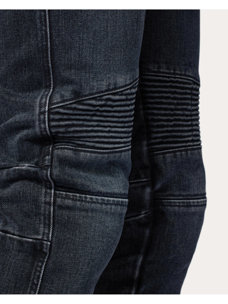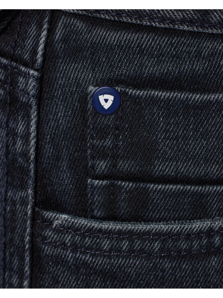 - 15 oz Cordura denim- Cordura® denim zachowuje klasyczny wygląd bawełnianego dżinsu, który sprytnie maskuje cechy takie jak trwałość i odporność na ścieranie. Połączenie to jest mocniejsze niż regularne połączenie dżinsu i aramidu. Cordura jest wyjątkowo trwała, a jednoczenie komfortowa i stylowa. Im cięższy denim, tym bardziej sztywna odzież i tym samym bardziej odporna na ścieranie.