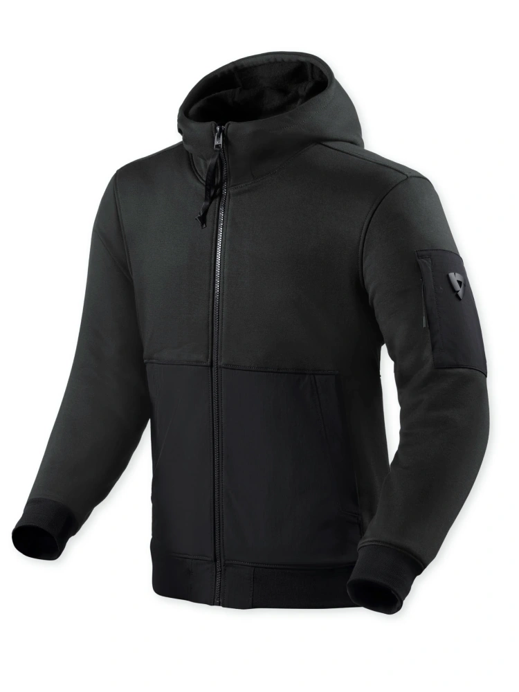 Bluza posiada kaptur dostosowany do pozycji motocyklowej, zamek na całej długości oraz praktyczne kieszenie.