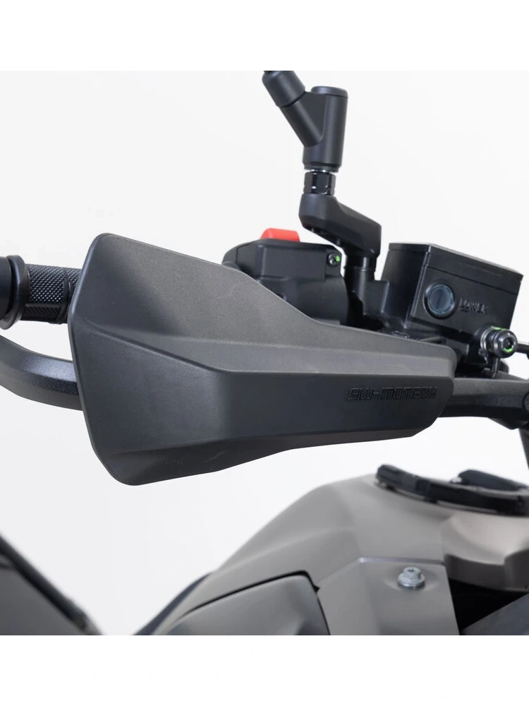 - Sportowe osłony dłoni wykonane z wytrzymałego tworzywa sztucznego, chroniące przed wiatrem, zimnem i deszczem