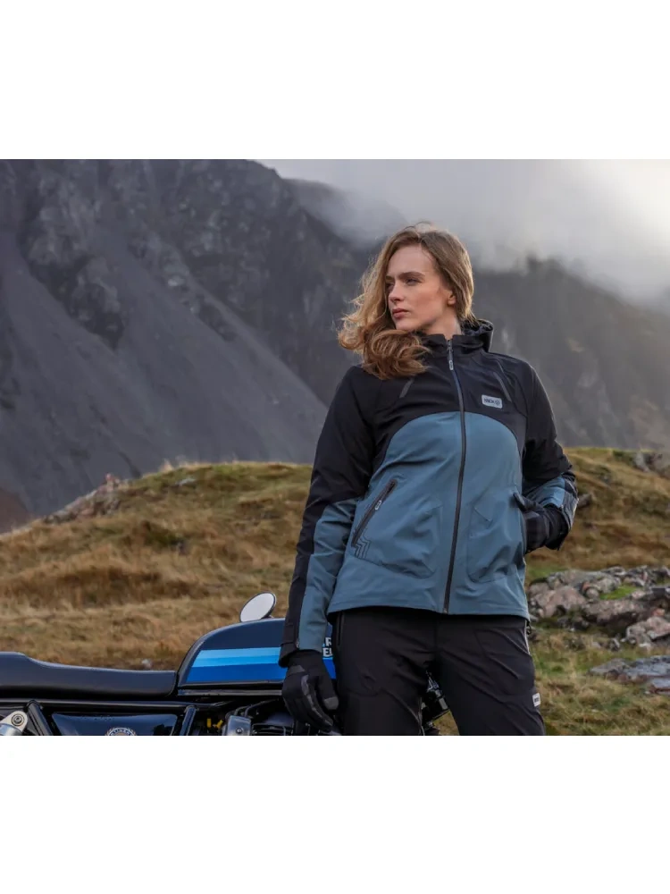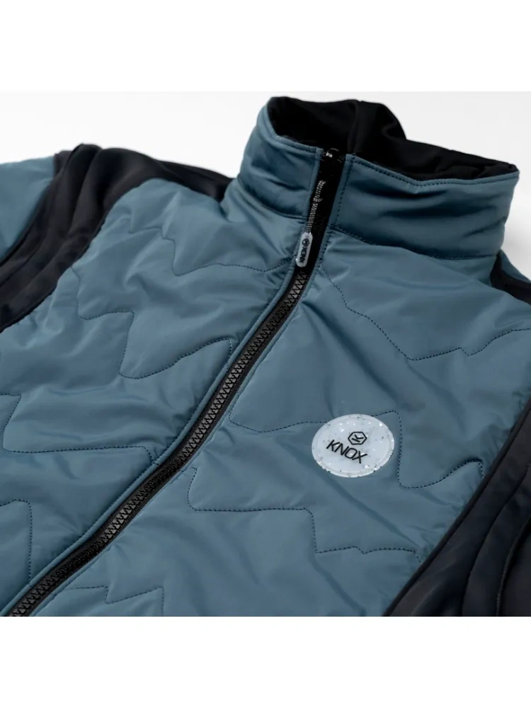Model Knox Modra to damska kurtka przeciwdeszczowa o modułowej konstrukcji, przeznaczona do użytkowania przez cały rok. Wykonana z miękkiej, elastycznej tkaniny zewnętrznej, zapewnia komfort i swobodę ruchów, a membrana wodoodporna 20K skutecznie chroni przed opadami i wiatrem, zachowując oddychalność.