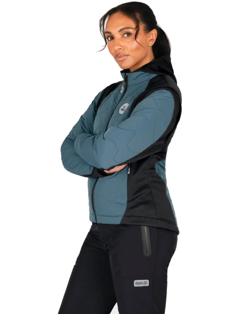 Podklejane szwy na całej konstrukcji zwiększają szczelność, a hybrydowa warstwa ocieplająca z pikowaniem mountain quilt wspiera komfort cieplny. Wnętrze uzupełnia oddychająca siatkowa podpinka z kapturem, która pomaga w regulacji wilgotności.