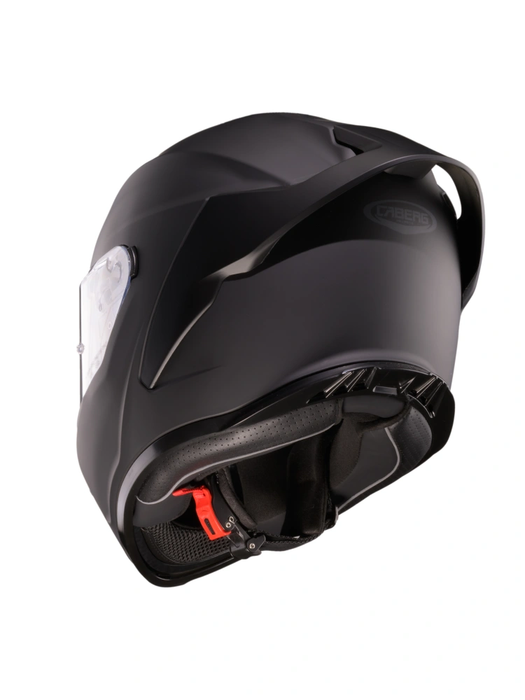 Kask integralny został wyposażony w wizjer przystosowany do montażu wkładki Pinlock, co pozwala skutecznie ograniczyć parowanie i utrzymać dobrą widoczność w trudnych warunkach pogodowych. Praktyczne zapięcie mikrometryczne ułatwia szybkie i precyzyjne dopasowanie kasku nawet w rękawicach, zwiększając wygodę codziennego użytkowania. Całość uzupełnia kompatybilność z systemem komunikacji Caberg Pro Speak Evo.