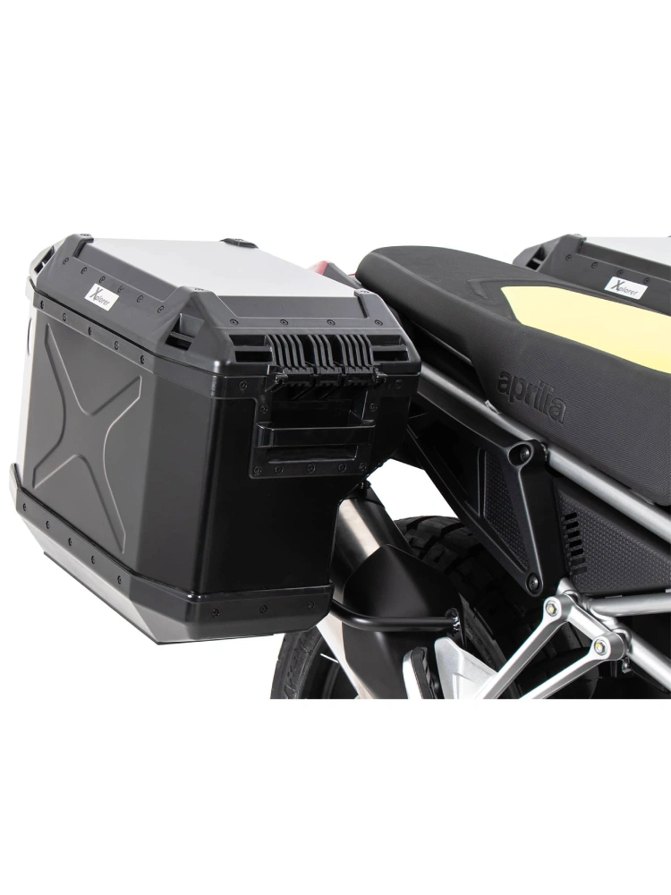 - zestaw kufrów bocznych Xplorer Cutout wraz ze stelażem bocznym (na prawą i lewą stronę) ze stali nierdzewnej,