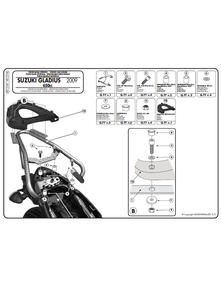 Stelaż GIVI pod kufer centralny Monolock Suzuki Gladius 650 (09-16)[płyta Monolock w zestawie]