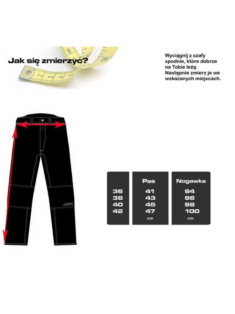 - materiał kevlarowy na kolanach, biodrach i tyłku