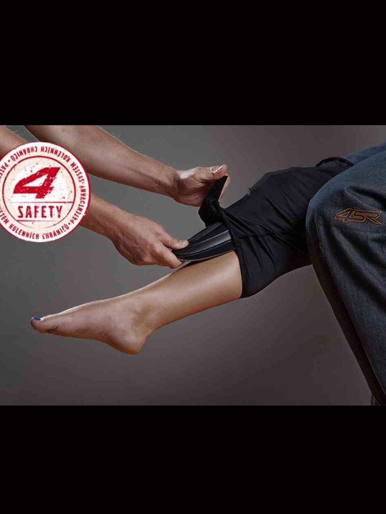 - damskie spodnie motocyklowe posiadają markowe ochraniacze Betac® na kolanach certyfikowane dla normy EN 1621-1 z możliwością regulacji na wysokość. Ochraniacze są zamocowane w elastycznej kieszeni (drugiej nogawce), której nie znajdziecie w żadnych innych motocyklowych jeansach!