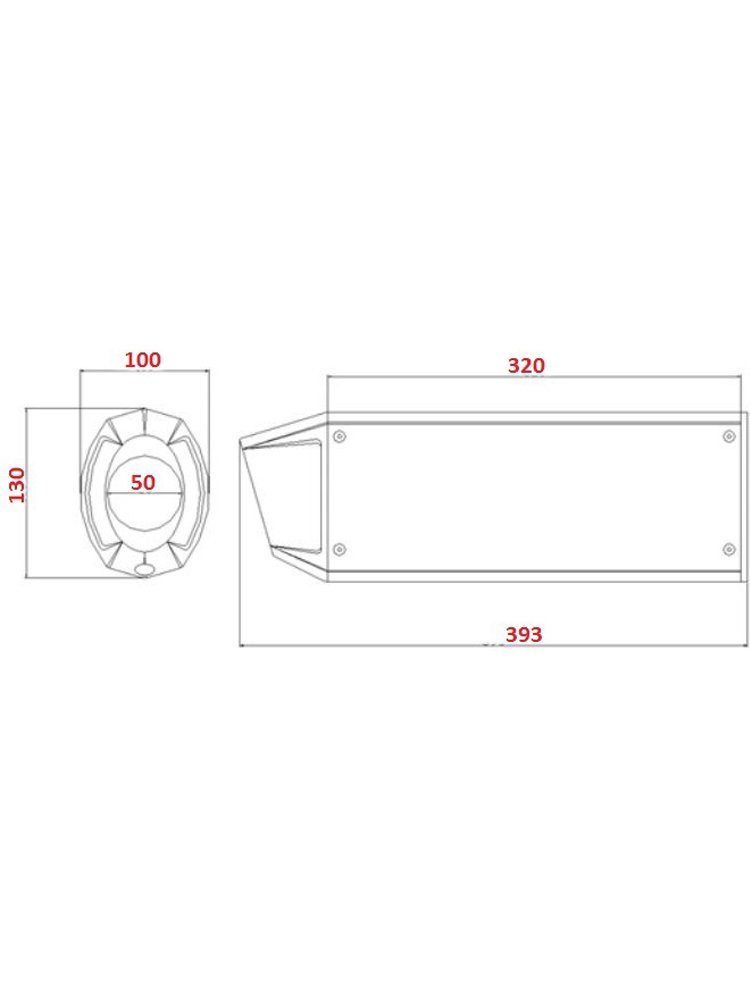 Tłumik typu XOVS wyprodukowany ze stali nierdzewnej AISI 304 wykończonej czarnym lakierem. Asymetryczna i stożkowa zaślepka w kolorze czarnym, wyprodukowana z polimeru wysokiej jakości.