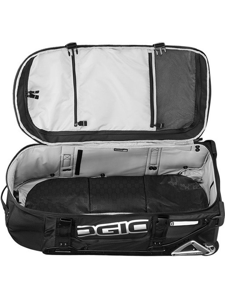 Torba Ogio RIG 9800 świetnie sprawdzi się w każdych, nawet najbardziej ekstremalnych warunkach. Wykonana jest z odpornego na przetarcia i przebicia materiału 600D poly PVC oraz 420D dobby poly PVC. System SLED z plecami wykonanymi z plastiku oraz mocnymi terenowymi kółkami sprawia że torba jest niezwykle wytrzymała i funkcjonalna. Szerokie otwarcie ułatwia dostęp do głównej komory i pozostałych kieszeni dzięki czemu znacznie uefektywnia pakowanie. Piankowa przegródka na dnie komory umożliwia podzielenie komory na 2 części oferując lepsze rozłożenie bagażu. Dodatkowe 2 mniejsze kieszenie na suwak posłużyć mogą jako miejsce na buty, narzędzia lub inne akcesoria. Ochronę zapewniają panele z pianki iFoam rozmieszczone na całej powierzchni torby. Transport usprawniają pasy ściągające i uchwyty wraz z teleskopową rączką.