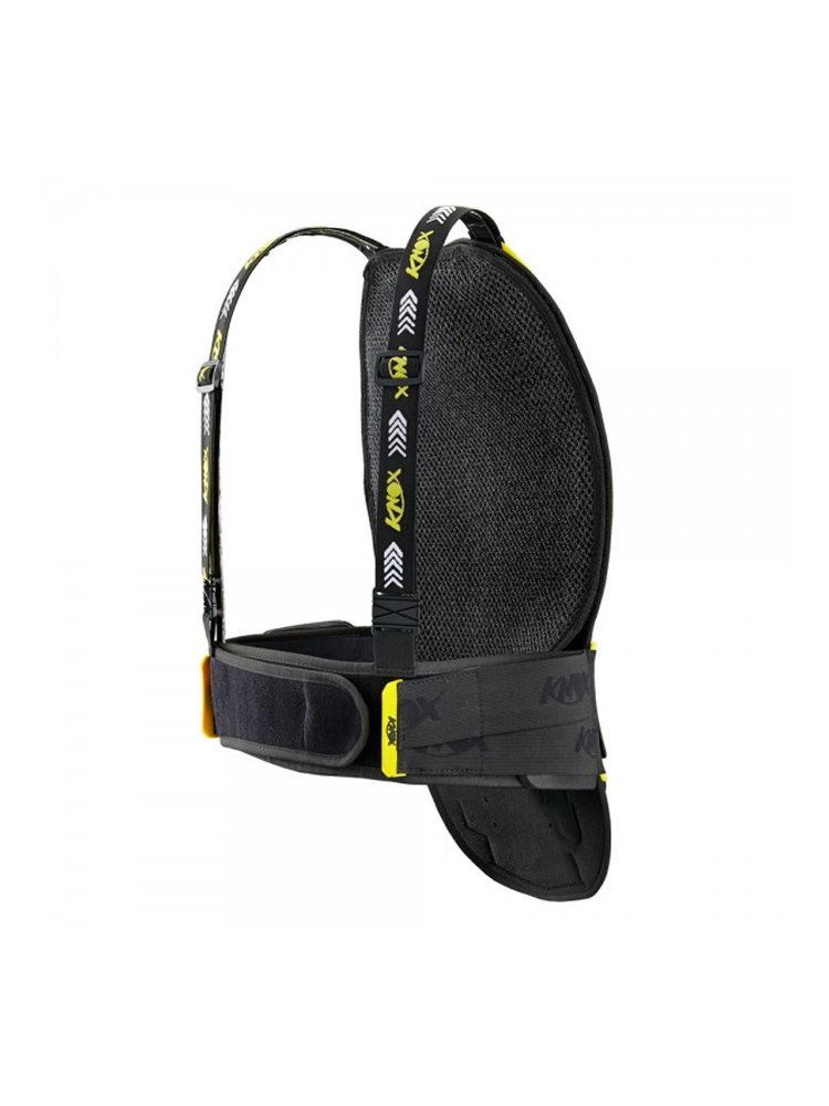 Knox Aegis to innowacyjny ochraniacz pleców wykonany z wytrzymałej termoplastycznej gumy, która absorbuje bardzo dużą część energii powstałej podczas uderzeń. Siedem rozmiarów (począwszy od męskich poprzez damskie i dziecięce) umożliwia idealne dopasowanie do każdego rodzaju sylwetki. Cienka konstrukcja jest bardzo lekka i niewidoczna, dzięki czemu protektor można schować nawet pod obcisłą skórzaną kurtką. Odpinana przewiewna podszewka wykonana jest ze specjalnego materiału, który umożliwia pranie jej w zwykłej pralce automatycznej, dzięki czemu zawsze pozostaje świeża. Ochraniacz z panelami o przekroju plastra miodu dzięki systemowi IPS jest bardzo elastyczny i pozwala na przyjęcie idealnej pozycji na motocyklu. Rewelacyjny system wentylacji gwarantuje optymalny przepływ powietrza, który utrzymuje przyjazną temperaturę pod ochraniaczem. Wielopozycyjny pas mocujący z uchwytami bocznymi świetnie zabezpiecza kręgosłup i umożliwia przesunięcie ochraniacza. Naramienne paski z opcją szybkiego odpinania posiadają również możliwość zapięcia ich na krzyż, znacząco zwiększając komfort i stabilność. Ochraniacz spełnia wymogi Certyfikatu Europejskiego EN1621-2:2014. Aegis przeszedł test na poziomie 2 (Level 2), jak również zaliczył testy na niską i wysoką temperaturę +40C i -20C, co potwierdziło jego użyteczność we wszystkich warunkach, włączając w to sporty zimowe. Protektor ma możliwość dokupienia certyfikowanego ochraniacza klatki piersiowej (sprzedawany osobno).