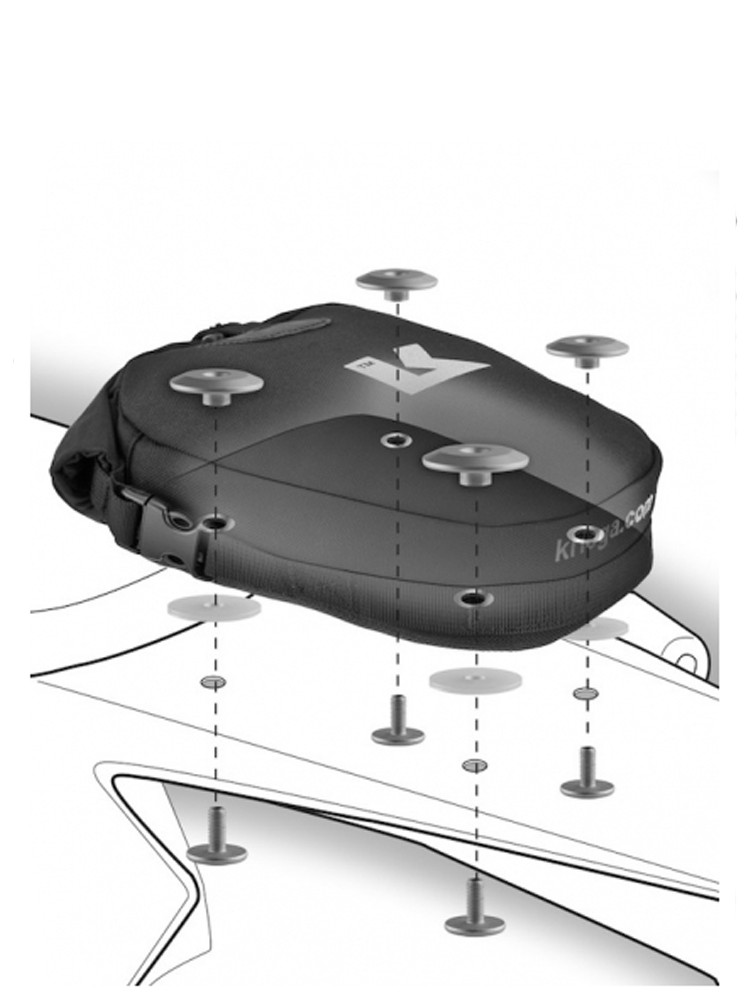 Torba: 100% wodoszczelna, montowana za pomocą śrub do tylnego błotnika, wykonana z bardzo mocnego materiału Cordura 1000D. 2,5 litra pojemności - idealna na apteczkę, małe narzędzia, suche rękawice itp. Innowacyjny system mocowania na aluminiowych śrubach (więcej w instrukcji mocowania).