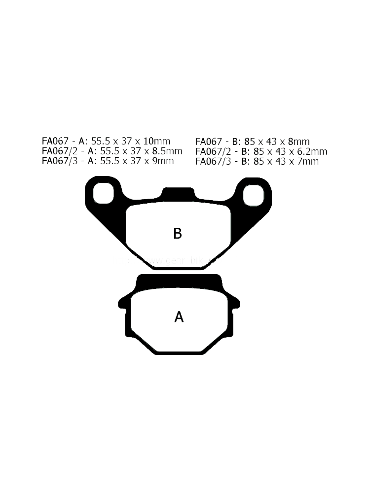 Klocki hamulcowe EBC na tył FA067 A. 55.5 x 37 x 10mm B. 85 x 43 x 8mm