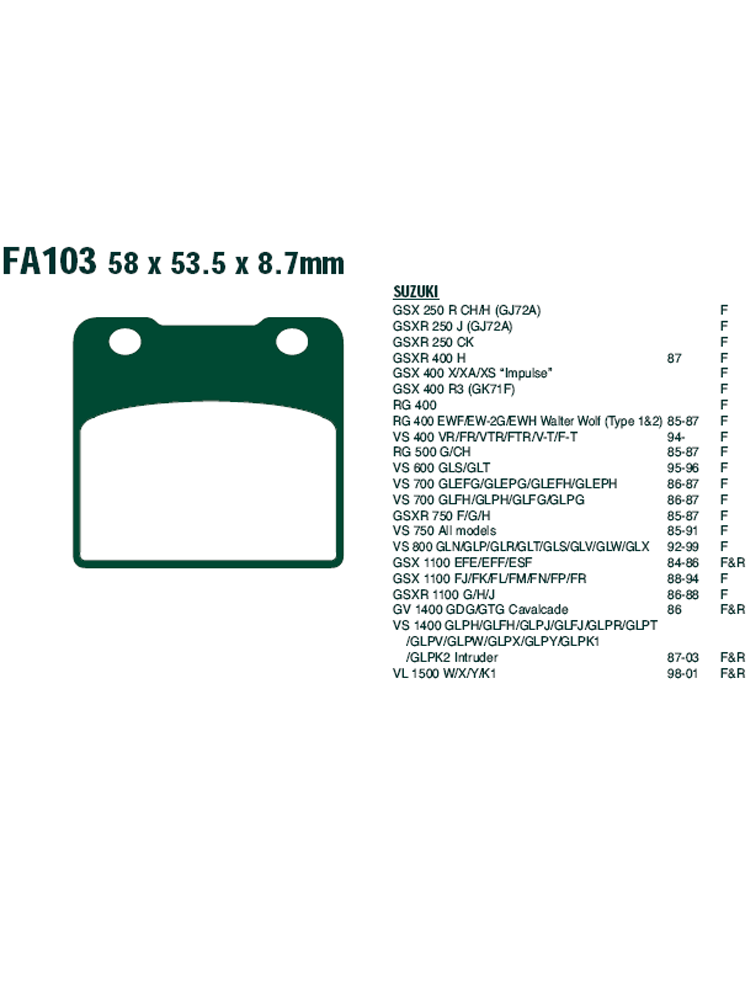 Klocki hamulcowe EBC FA103HH 58 x 53.5 x 8.7mm NA PRZÓD