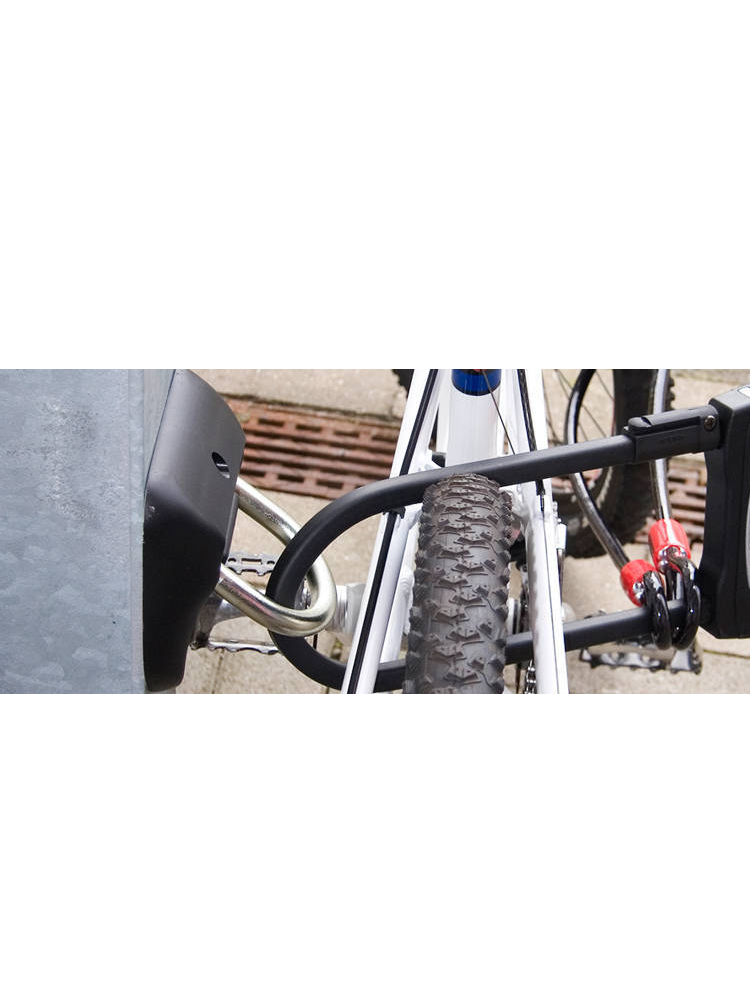- w połączeniu z U-Lock'iem lub łańcuchem umożliwia przypięcie jednośladu do ściany w garażu, piwnicy lub do elewacji budynku,
