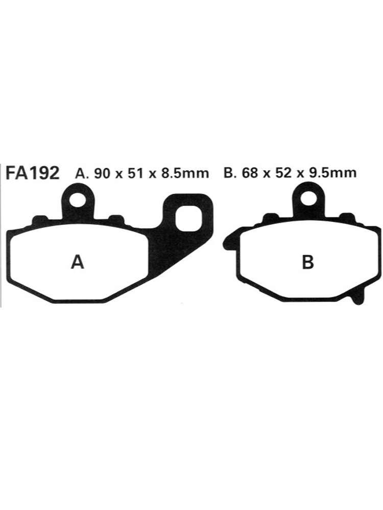 Klocki hamulcowe EBC FA192HH A. 90 x 51 x 8.5mm B. 68 x 52 x 9.5mm NA TYŁ