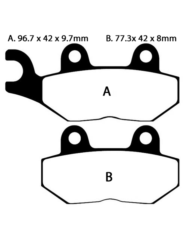 Klocki hamulcowe EBC FA214/2HH A. 96.7 x 42 x 9.7mm B. 77.3 x 42 x 8mm