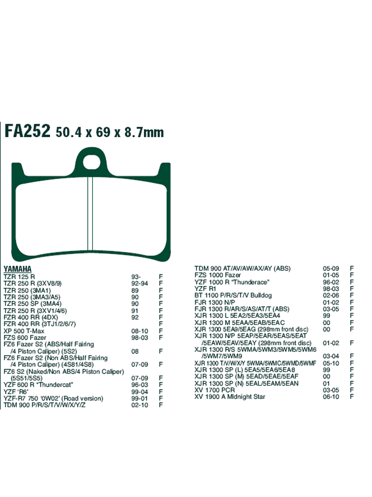 Klocki hamulcowe EBC EPFA252HH 50.4 x 69 x 8.7mm na przód.