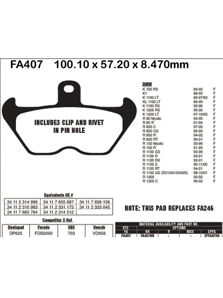 ![]() | Seria klocków EPFA Ta seria klocków klasy HIGH END posiada najnowsze osiągnięcia w dziedzinie materiałów zastosowanych w układach hamulcowych. Bardzo droga mieszanka zawierająca spiek brązu oraz materiałów nowej ery takich jak wolfram oraz molibden, która gwarantuje doskonałą przyczepność oraz odporność. Seria EP dedykowana jest dla miłośników jazdy torowej oraz dla użytkowników, którzy preferują agresywny styl jazdy. |