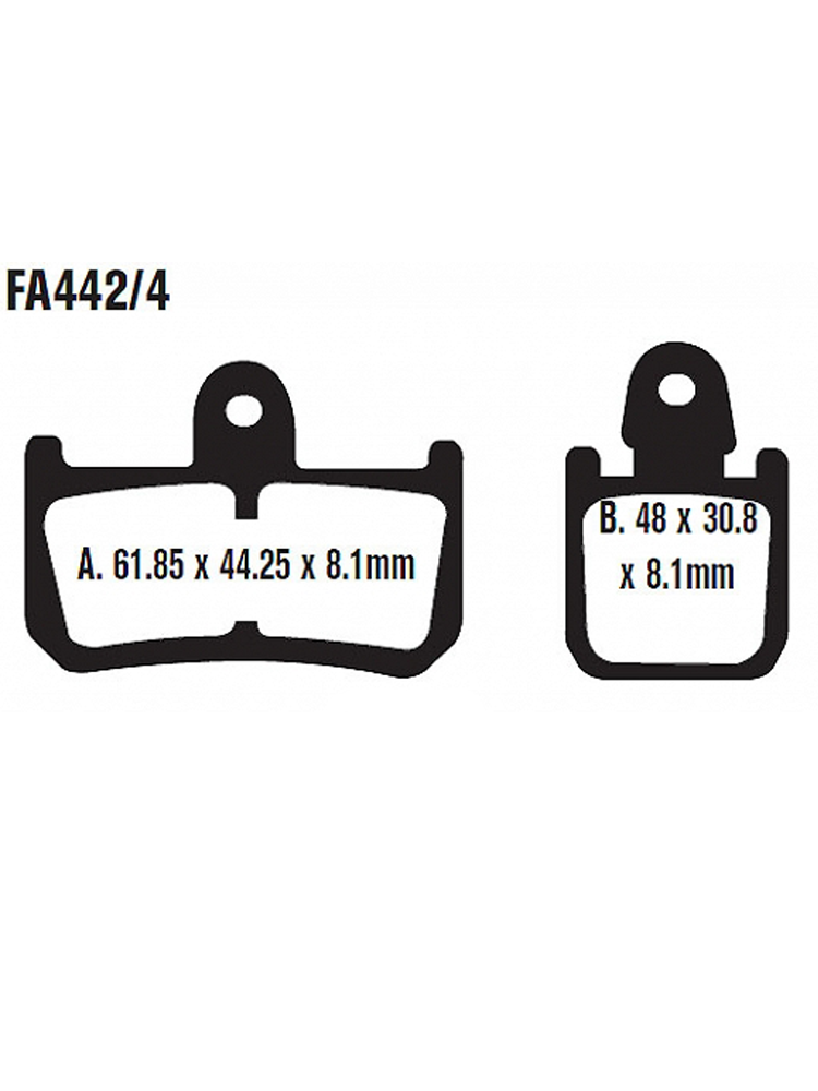 Klocki hamulcowe EBC FA423/4 A. 61.85 x 44.25 x 8.1mm B. 48 x 30.8 x 8.1mm NA PRZÓD