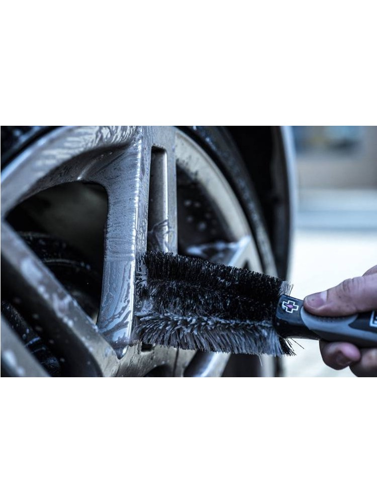 Szczotka przeznaczona do czyszczenia kół. Jej specjalnie wyprofilowany kształt umożliwia skuteczne usuwanie najcięższych zabrudzeń z felg i szprych. Posiada otwór do zawieszania, a gumowane strefy chronią szczotkę i delikatne części motocykla przed uszkodzeniami. Wytrzymałe nylonowe włosie.
