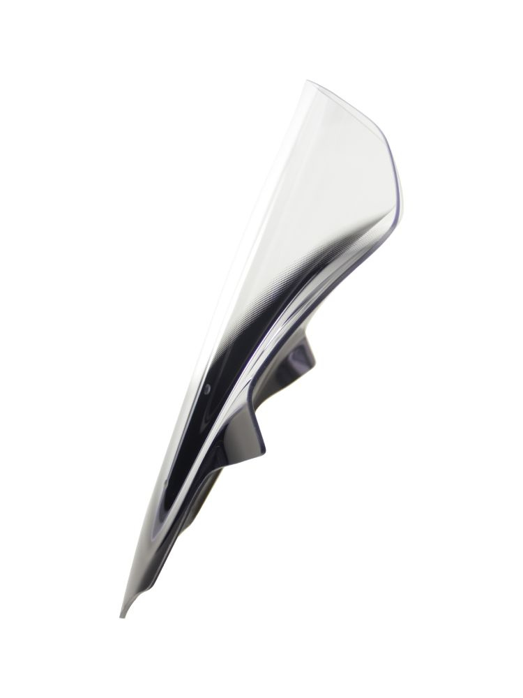 - Zaokrąglenie pośrodku szyby ma za zadanie poprawić aeorodynamikę oraz zmniejszyć opory powietrza wokół kasku