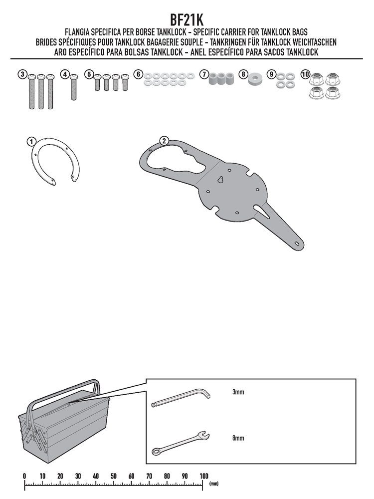 Tanklock do zamontowania nad wlewem zbiornika paliwa. Umożliwia montaż Tankbagów.