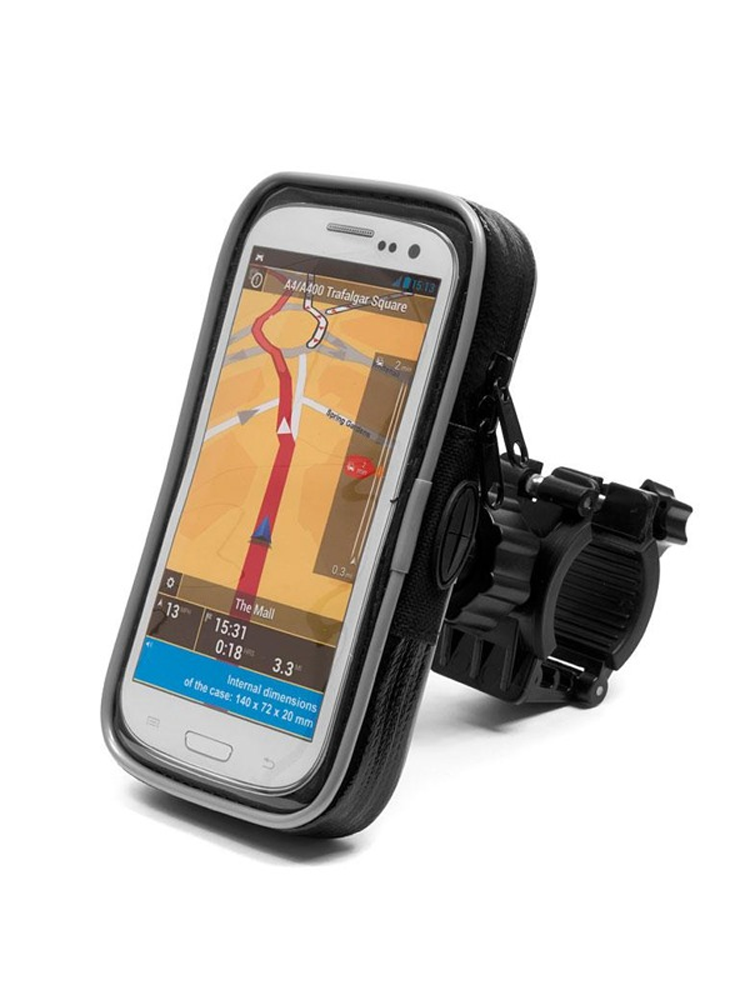 Wodoodporne etui na telefony/smartfony z uchwytem do motocykla, quada, skutera oraz roweru. Futerał ten pasuje do większości telefonów i smartfonów. Etui bardzo dobrze chroni urządzenie przed wodą, brudem oraz kurzem. Uchwyt wraz z etui, wykonane są z solidnych i trwałych, antywibracyjnych materiałów. Zarówno mocowanie uchwytu do kierownicy motocykla lub innego pojazdu, jak i mocowanie etui z telefonem do uchwytu jest łatwe oraz nie wymaga praktycznie żadnych narzędzi.