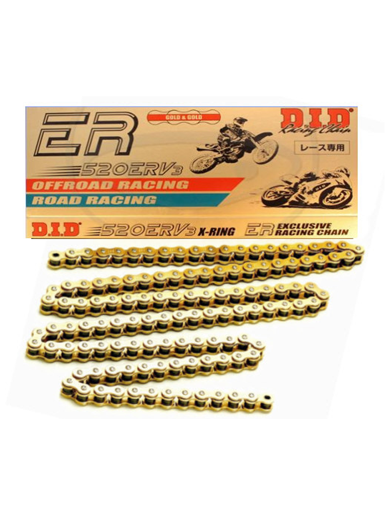 W skład zestawu wchodzi łańcuch napędowy DID520 ERV3 EXCLUSIVE RACING (X-ring -lekki, super wzmocniony) 102 ogniwa oraz zębatka SUNSTAR SUNF389-15 i SUNR1-3435-41.