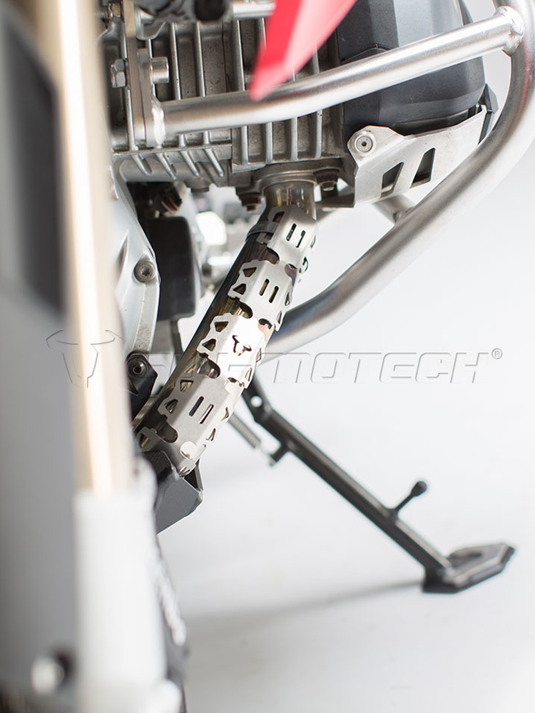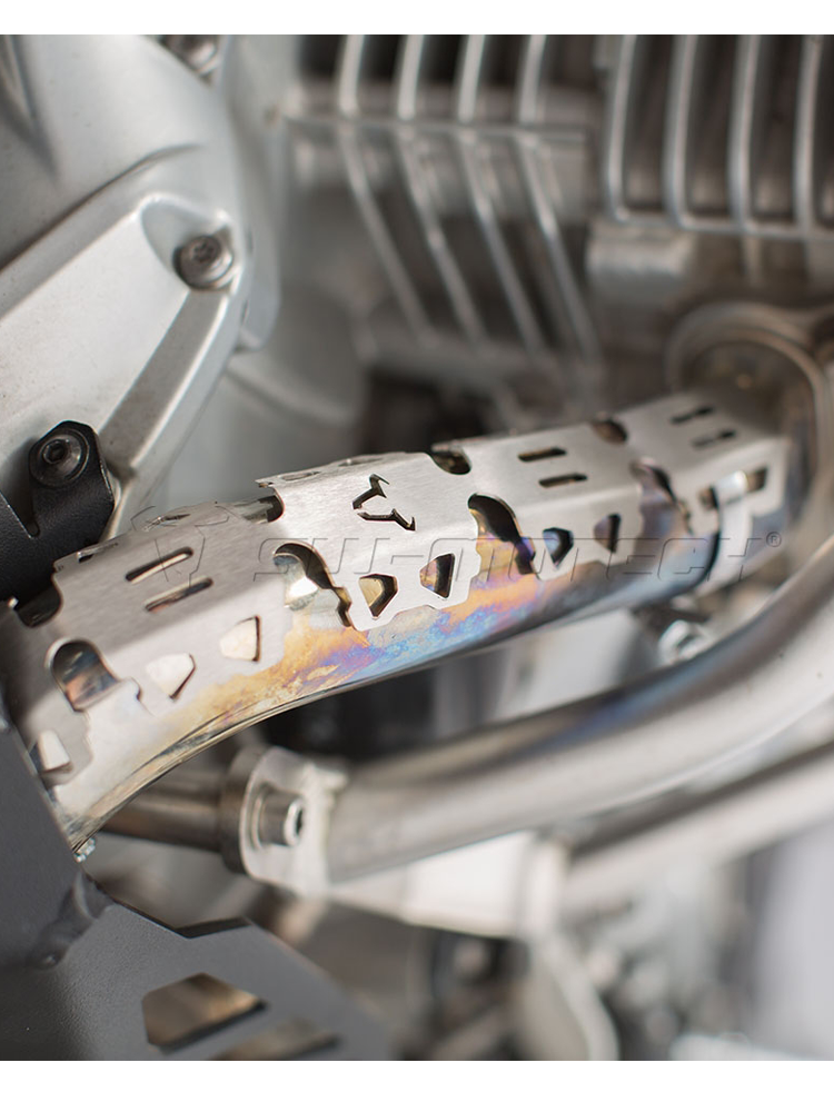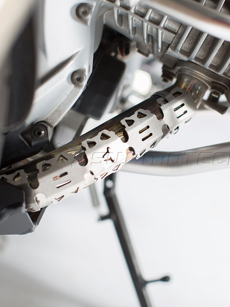 Osłona kolektora motocykla od SW-MOTECH, została tak zaprojektowana, aby osłonić rury wydechowe przed kamieniami, a jednocześnie być uzupełnieniem osłony silnika. Oprócz zabezpieczenia przed uszkodzeniem spełnia także funkcję radiatora, skutecznie odprowadzając temperaturę. Cała konstrukcja jest elastyczna co sprawia, że bez problemu zamontujesz na każdym kolektorze.