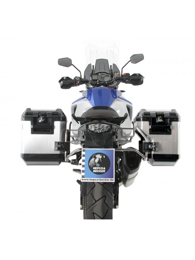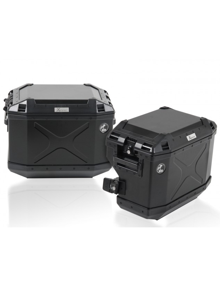 - zestaw kufrów bocznych Xplorer Cutout wraz ze stelażem bocznym (na prawą i lewą stronę) ze stali nierdzewnej,