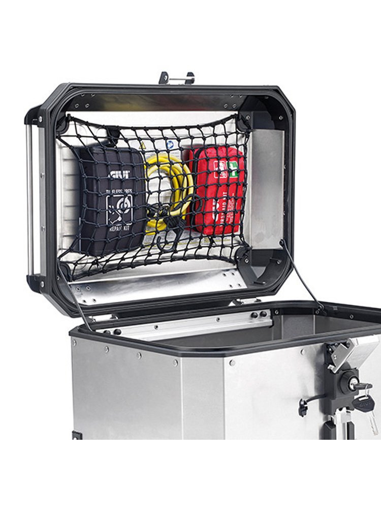 Siatka GIVI E161 zapewnia, że istotne przedmioty i rzeczy osobiste są zawsze pod ręką. Pasuje do kufrów Trekker Outback 58litrów i mieści się pod pokrywą obudowy.