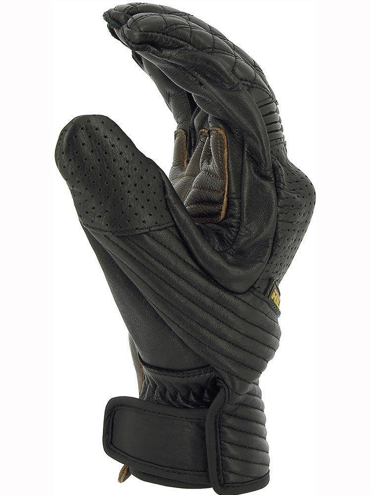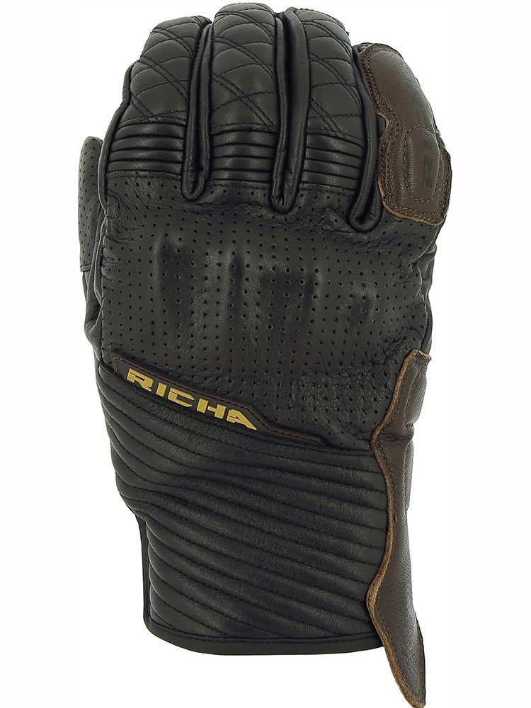 Rękawice motocyklowe Arizona to model w stylu vintage oferujący komfort, wentylację oraz bardzo dobrą ochronę. Do uszycia rękawicy wykorzystano wysokiej jakości kozią skórę, która na grzbiecie, kciuku i od spodu palców posiada perforację. Zapewnia ona właściwy przepływ powietrza w cieplejsze dni. Skóra jest miękka i przyjemna, dzięki czemu bardzo wygodna w noszeniu. Do tego jest trwała i mocna, odporna na przetarcie i ścieranie, co zapewnia znakomitą ochronę w razie szlifu po asfalcie. Konstrukcję wzmacniają podwójne szwy w miejscach najbardziej narażonych na uszkodzenie oraz dodatkowa warstwa skóry na małym palcu, oraz brzegu rękawicy. Przed poważniejszymi obrażeniami chronią twarde ochraniacze kostek oraz wzmocnienia z amortyzującej pianki na dłoni. Rękawica posiada lekko wyprofilowana konstrukcję oraz rozciągliwe panele na palcach, które pozwalają na wygodne i łatwe zamknięcie dłoni na kierownicy. Obsługa klamek i dźwigni również jest bezproblemowa. Wygodnym rozwiązaniem zastosowanym w modelu Arizona są zewnętrzne szwy na palcach. Zapobiegają one niepożądanym odciskom i otarciom mogącym powstać po całodziennej jeździe motocyklem. Rękawice charakteryzują się krótkim mankietem zapinanym na mocny rzep. Posiadają także patkę ułatwiającą ich zakładanie.