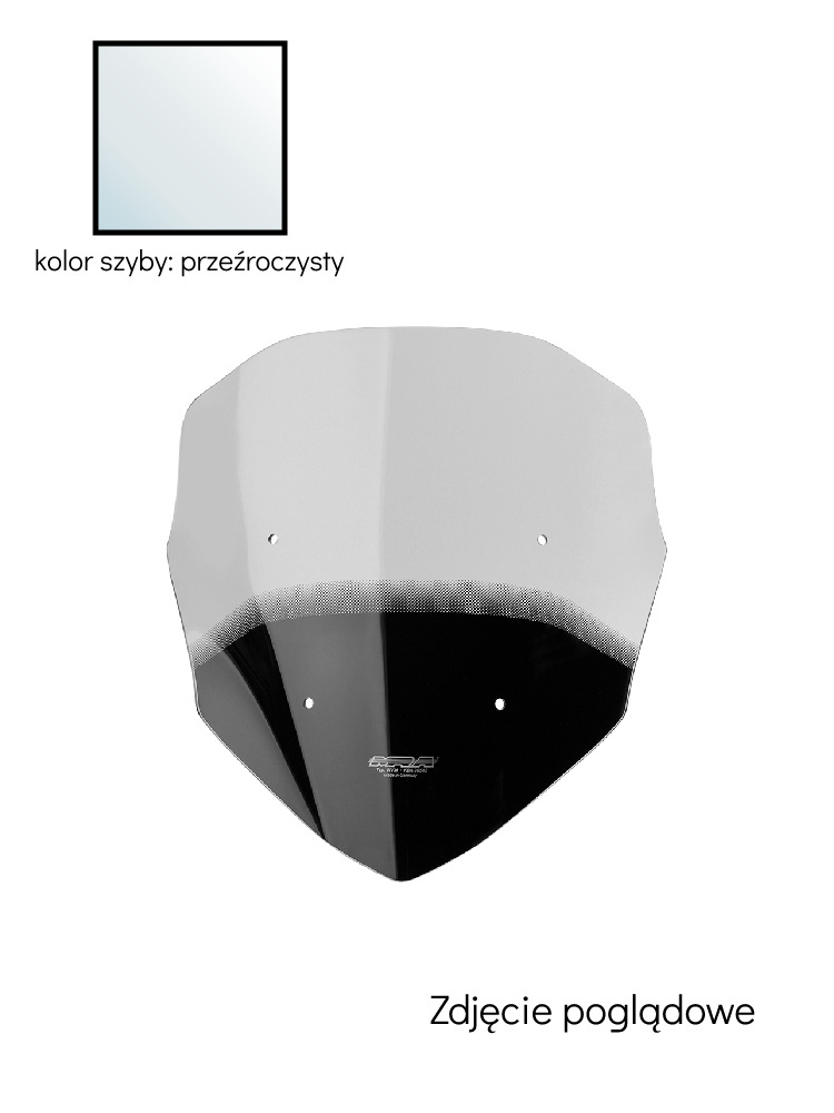- Kształt podobny do szyby oryginalnej lecz jest dłuższa i szersza dla zapewnienia większej ochrony przed oporem powietrza.