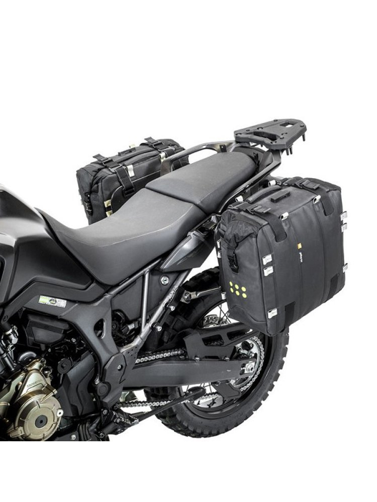 OS-32 Soft Pannier to torba motocyklowa, która wyznacza nowe standardy, jeśli chodzi o torby, dedykowane do dalekich wypraw motocyklowych nastawionych przede wszystkim na turystykę. Torba posiada w sobie wiele cech tradycyjnego bagażu ADV, dzięki czemu świetnie sprawdzi się nawet w najbardziej wymagających warunkach pogodowych, niezależnie od pory roku. Strukturalny kształt umożliwi łatwe i przyjemne pakowanie rzeczy, a samo przymocowanie torby do motcykla nie potrwa więcej niż jedną minutę. Wykonana z odpornych na ścieranie materiałów w postaci tkaniny Cordura 1000D oraz materiału Hypalon, wspartych wytrzymałym Kevlarem. Zwijane zamknięcie typu roll-top jest w stu procentach wodoodporne i tym samym w maksymalny sposób chroni przewożoną zawartość przed wodą. Elementy odblaskowe umieszczone na torbie Kriega OS zwiększą widoczność motocyklisty po zmroku oraz w trudnych warunkach pogodowych. Torbę OS-32 Soft Pannier możemy dopasować na dwa sposoby. Pierwszym z nich jest tradycyjnym sposobem "przez siedzenie" przy użyciu pasków OS-STRAPS, zaś drugi sposób opiera się na zaczepieniu torby na specjalnej platformie OS-PLATFORM do ramy motocykla.