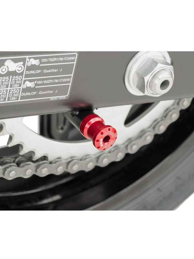 Umożliwiają podniesienie motocykla za wahacz – za pomocą podnośnika z uchwytami typu V. Przed zakupem zweryfikuj, iż Twój motocykl posiada w wahaczu odpowiednie otwory z gwintem (rozmiar jest przypisany do marki pojazdu). Posiada je większość nowszych motocykli sportowych i turystycznych.