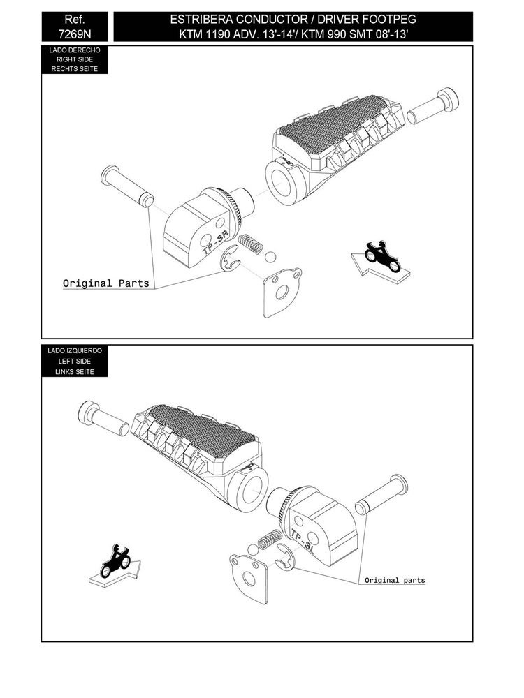 Mocowanie sportowych podnóżków PUIG KTM 990 Supermoto / 1050/1090 Adventure/R / 1190 Adventure / 1290 Super Adventure/R/S/T (pasażera)