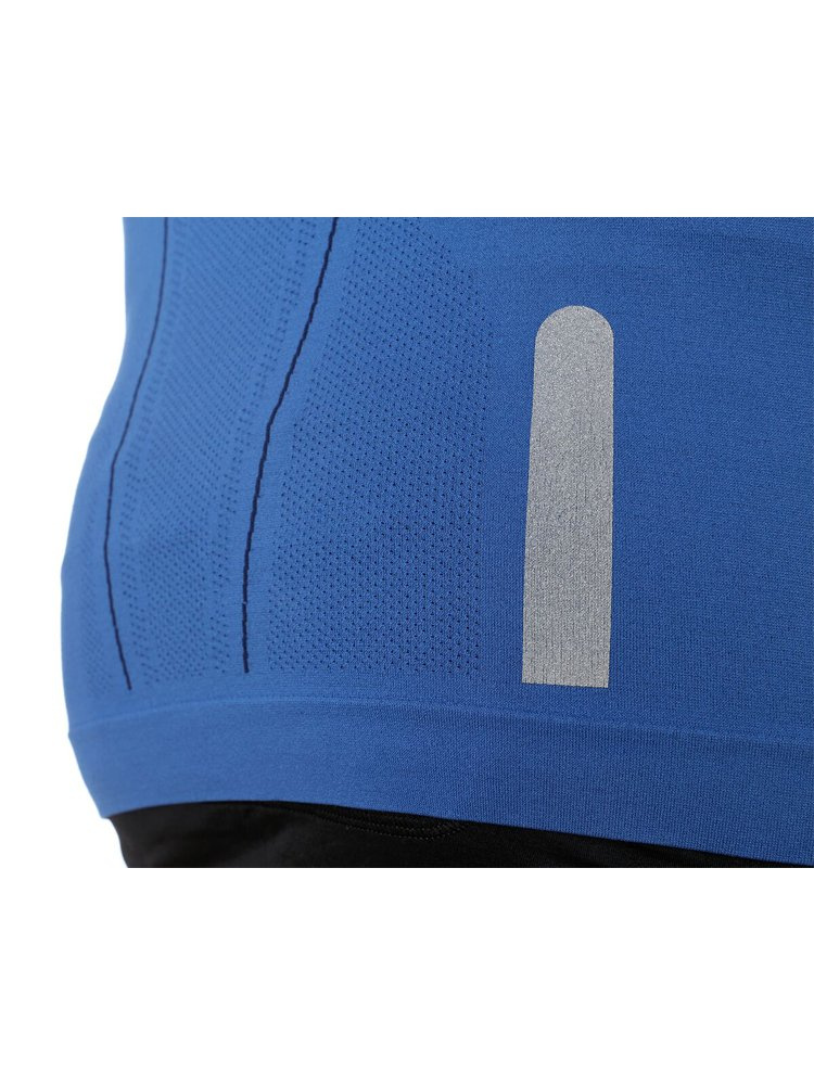 Koszulka męska ATHLETIC z krótkim rękawem została wykonana w technologii bezszwowej z dwuwarstwowej, oddychającej dzianiny. Wewnętrzna warstwa wykonana z poliestru szybko odprowadza wilgoć od skóry. Zewnętrzna warstwa poliamidowa odbiera wilgoć i nadmiar ciepła z pierwszej warstwy zapobiegając przegrzewaniu się organizmu. Specjalne strefy wentylacyjne w miejscach o wzmożonej potliwości oraz luźniejszy krój gwarantują prawidłową wentylację organizmu w trakcie wysiłku. W koszulkach zastosowano funkcjonalny poliester, gwarantujący żywe i trwałe kolory. Na klatce piersiowej, plecach i rękawkach umieszczono elementy odblaskowe. Odzież posiada właściwości antybakteryjne i antyalergiczne. Koszulka idealnie sprawdza się podczas biegania oraz wszelkich aktywności  outdoorowych w wyższych temperaturach.