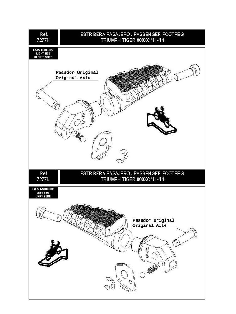 Mocowanie sportowych podnóżków PUIG do Triumph Tiger 800/XC/XCX/XCA/XR/XRX/XRT (pasażera)