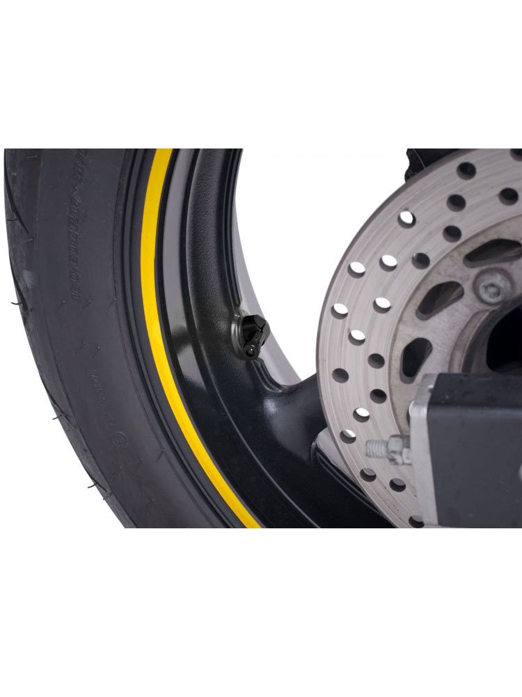 Zaworki 90 stopni umożliwiają wygodne pompowanie oraz sprawdzanie ciśnienia w oponach motocyklowych. W opakowaniu 2 szt. To rozwiązanie niewygodnego manewrowania końcówką ciśnieniomierza między felgą i tarczą hamulcową.