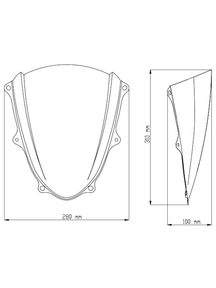 Sportowa szyba PUIG – z charakterystycznym, dodatkowym garbem w środkowej części poprawiającym aerodynamikę (double bubble, podwójny garb). Zaprojektowana w wirtualnym tunelu aerodynamicznym. Wysoka jakość optyczna (akryl 3 mm). Mocowana w miejsce fabrycznej, za pomocą fabrycznych śrub. Posiada niemiecki atest TUV.
