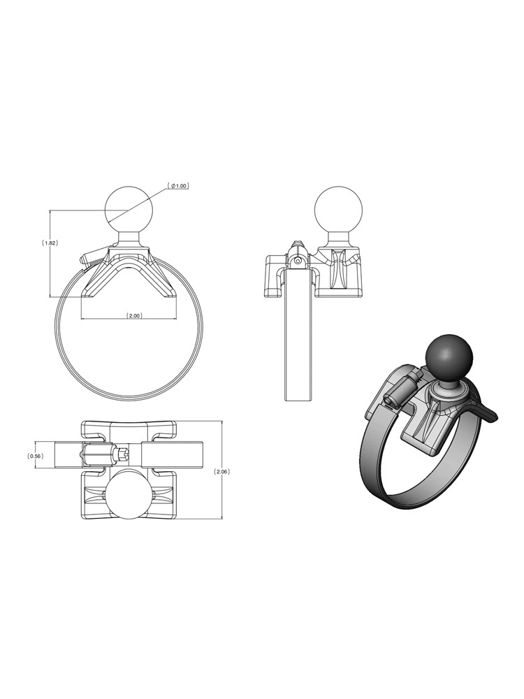 - RAM-B-108BU składa się z gumowej kuli o średnicy 2.54 cm podłączonej z podstawą w kształcie litery „V” oraz metalowych pasków. RAM-B-108BU jest dedykowana do montażu na elementach o średnicy od 2.54 cm do 5.33 cm maksymalnie